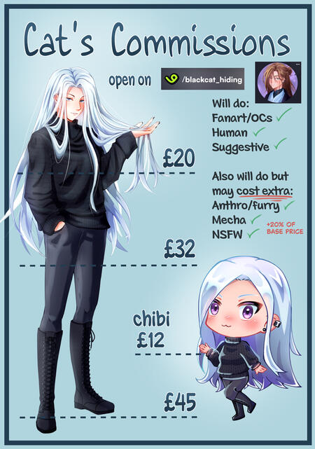 Status: OPEN :DThank you for considering commissioning me! It means the world to me as I'm trying to fund my sticker designs and get a better tablet because my current one is broken and difficult to work with :')